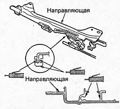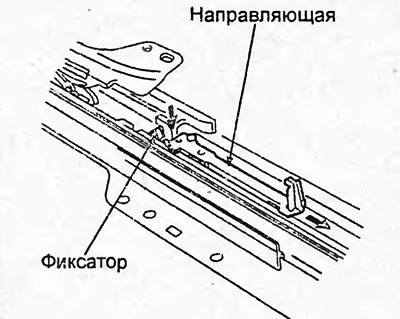 9. Установка производится в порядке, обратном снятию. Перед установкой нанесите смазку на направляющую стекла люка и направляющую шторок люка, как показано на рисунке.