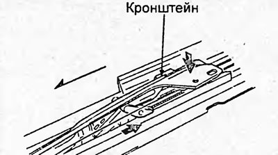 7. Поверните кронштейн стекла в сторону тяги, затем сдвиньте оба кронштейна вместе с тягами назад, как показано на рисунке.