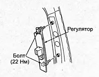 9. Снимите регулятор высоты точки крепления ремня безопасности переднего сиденья.