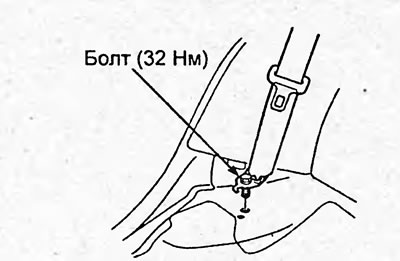 2. Отверните болт и снимите нижнее крепление ремня безопасности.