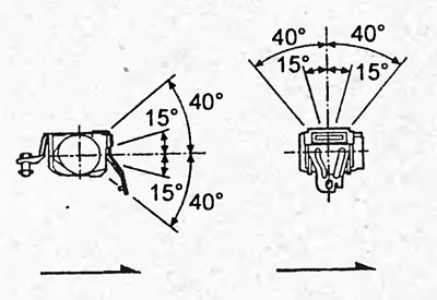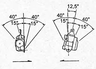 6. Убедитесь, что ремень безопасности можно вытянуть при угле наклона катушки 15° или меньше, и что ремень не может быть вытянут при угле наклона 40° и более.