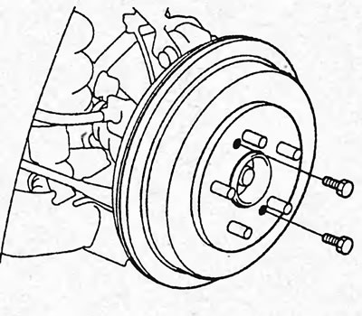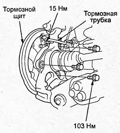 7. (Седан) Отверните болты и снимите тормозной щит.