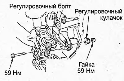 12. Нанесите метки на регулировочный болт и кулачок, затем отверните гайку.