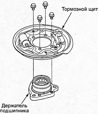 3. Отверните болты и снимите тормозной щит с держателя подшипника.