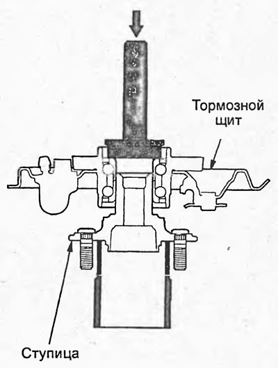 2. При помощи пресса и оправки выпрессуйте ступицу из держателя подшипника.