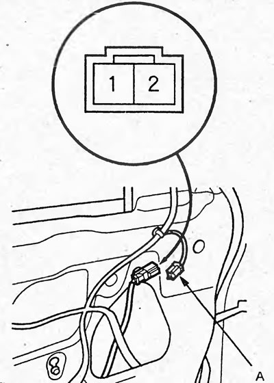 3. Проверьте работу стеклоподъемника, подавая напряжение аккумуляторной батареи на выводы "1" и "2".