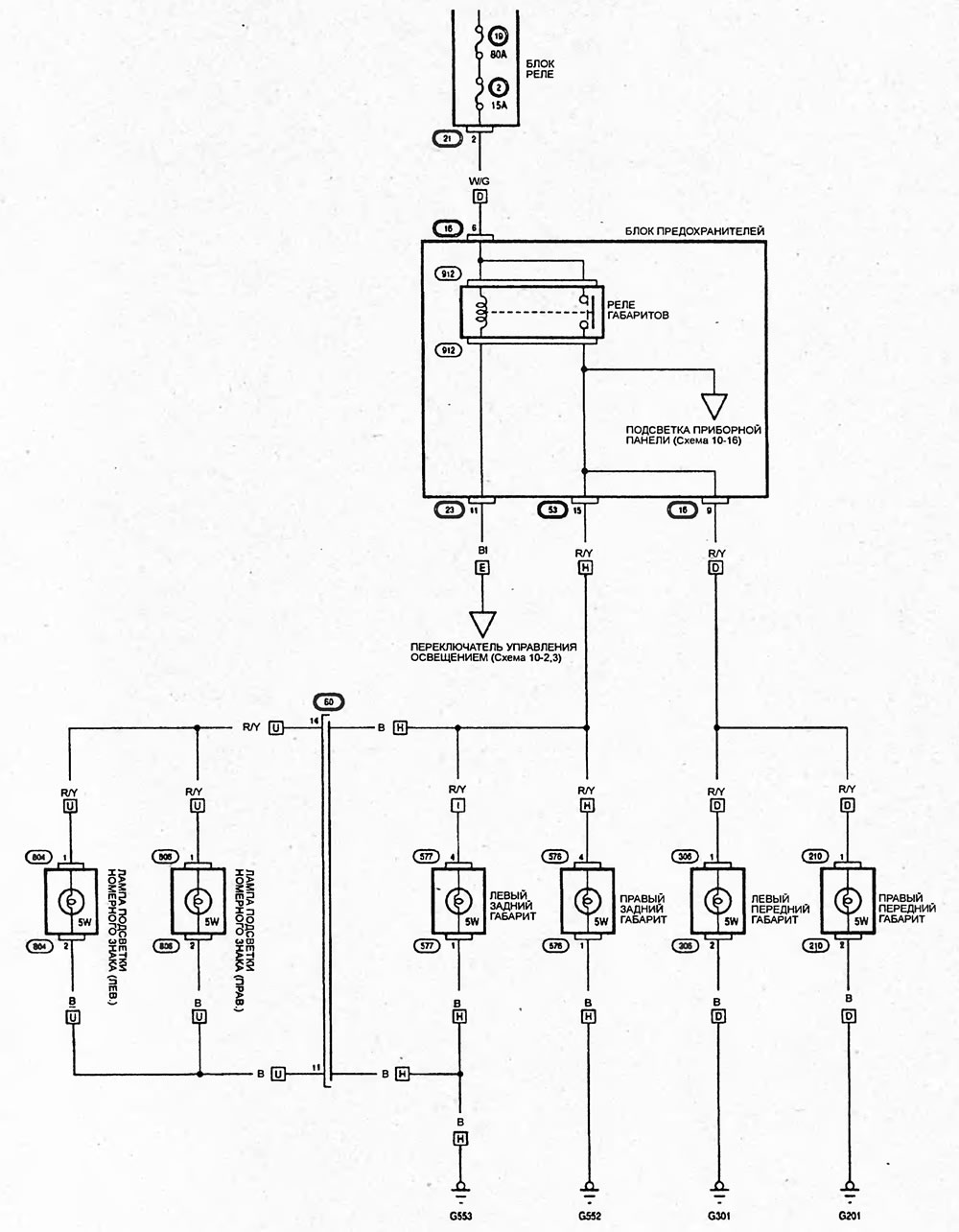 Схема 10-5.Передние и задние габариты и …