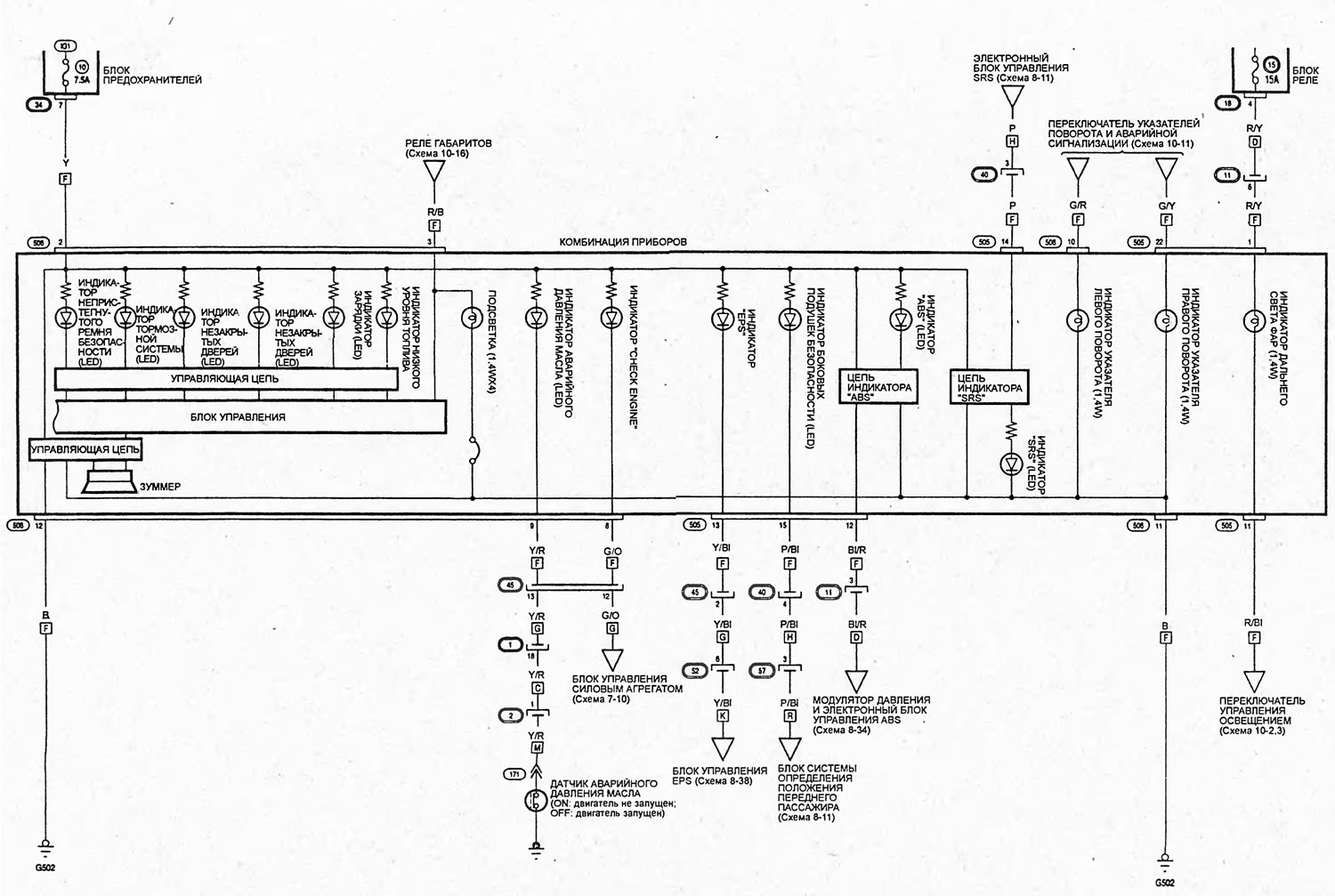 Схема 9-6. Комбинация приборов (4-дверные модели)