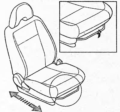Для регулировки продольного положения сидений переведите рычаг вверх и передвиньте сиденье в требуемое положение. После регулировки установите рычаг в исходное положение.