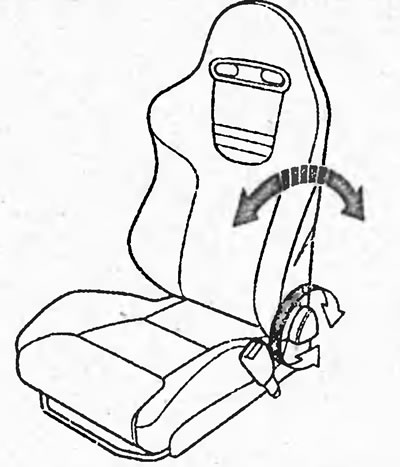 Для изменения угла наклона спинки сиденья поворачивайте ручку в сторону необходимого перемещения.