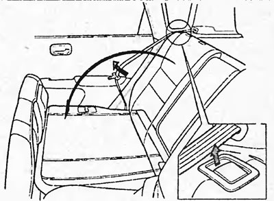 Для доступа к сиденью второго ряда переместите рычаг, показанный на рисунке, вверх.