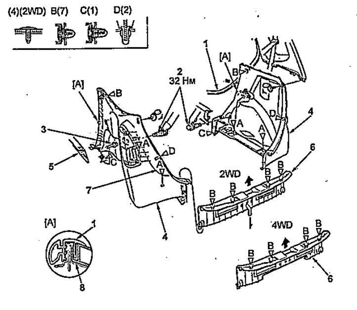 2 - нижнее крепление ремня безопасности заднего сиденья,