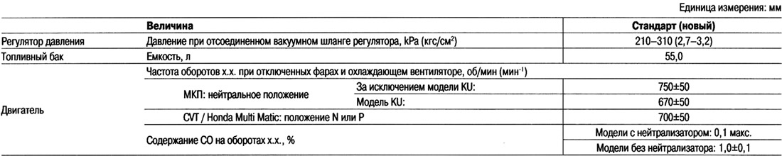 Стандартные значения и предельный износ (системы смазки, охлаждения,…