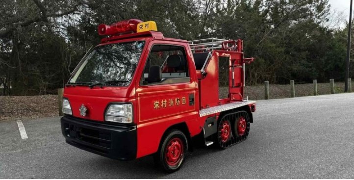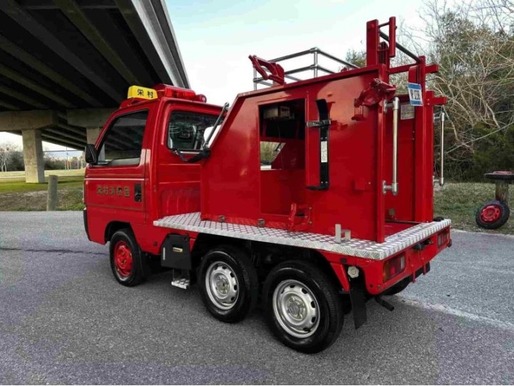 Речь идет о Honda Acty Crawler, на базе которого был спроектирован, возможно, самый маленький пожарный автомобиль в мире. Длина машины составляет всего 3,3-метра, но при всем этом эта 2-дверка является трехосной.