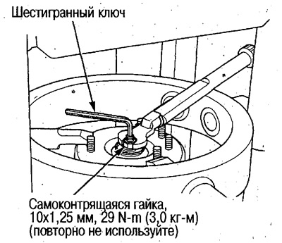 4. Закрутите новую самоконтрящуюся гайку (12 мм) и затяните ее с требуемым усилием, зафиксировав шток стойки шестигранным ключом.